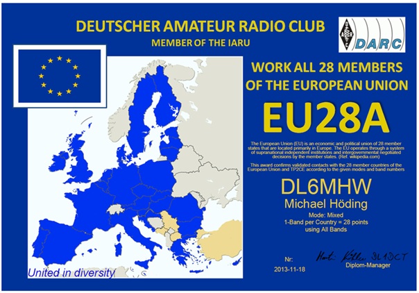 Seit 2011 gibt es PDF-Diplome, die Geld und Papier sparen. Der Paypal-Prozess wurde implementiert und ersetzte die damals umständliche Bezahlung von Diplomen. Hierzu wurde übrigens „ohne Beschluss“ das EU27A-Diplom erfunden, das nur einen Monat laufen sollte. Nach 100 herausgegebenen Diplomen hat das DARC-Referat aber entschieden, das Diplom weiter herauszugeben.